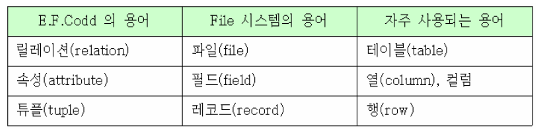 - ex) SUBJECT 릴레이션 : 과목에 대한 정보를 저장