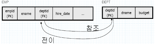 - 상호 관련이 있는 테이블들 사이에서 데이터의 일관성을 보장해주는 수단