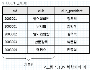 - 하나의 컬럼이 후보키의 역할을 하지 못하고 두 개 이상의 컬럼이 합쳐져야 후보키의 역할을 하는 경우