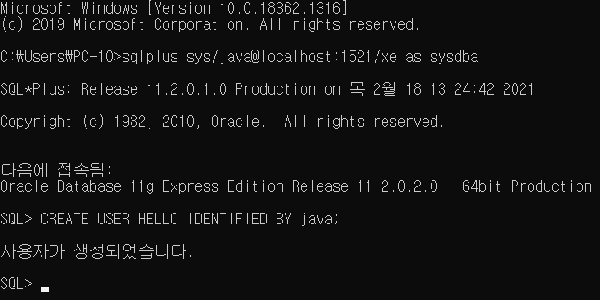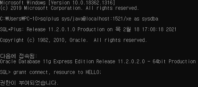 (사용자 계정 : HELLO / 사용자 비밀번호 : java)